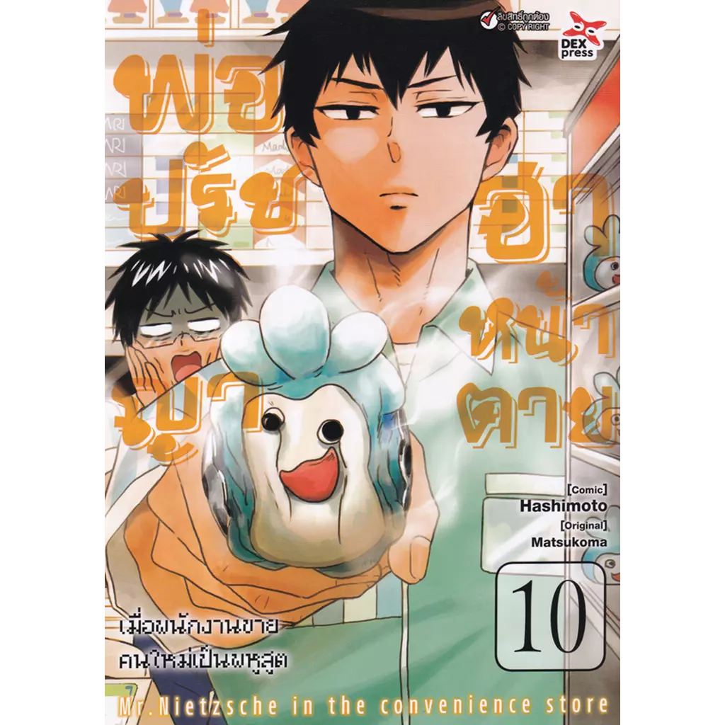 กลุ่มคนที่ดูเหมือนจะเป็นคนรู้จักของอาจารย์นิทเช่มาที่ร้าน “ว้าย นิอิเองเหรอ?” “ตายจริง ไม่ได้เจอกันตั้งนาน” “ทำไมถึงมาเป็นพนักงานร้านสะดวกซื้อ?” “ตลกจัง” คนรู้จักพวกนี้ซี้ซั้วพูดกันน่าดู “ไม่เข้ากับงานเลย” “อยู่ผิดเวทีแล้วละมั้ง” พูดจาแดกดันกันใหญ่ แต่ว่า “พวกนายเป็นคนดู ไม่ใช่กรรมการ” ตอบกลับไปอย่างหนักแน่น ทำเอาเงียบกริบ ความเร็วลมสูงสุดในคำพูด ซึ่งทำให้อีกฝ่ายเข้าใกล้ไม่ได้ อยากเอาอย่างจังร้านทรีเซเว่นสาขาถนนเลียบวัด ดินแดนลึกลับยุคปัจจุบันที่มีคนเพี้ยน ๆ มารวมตัวกัน แต่ก็ยังอุตส่าห์อยู่มาได้แต่การหางานทำก็ยังไม่คืบหน้าเหมือนเดิม มัตสึโคมะคุงคับขันหนัก!!