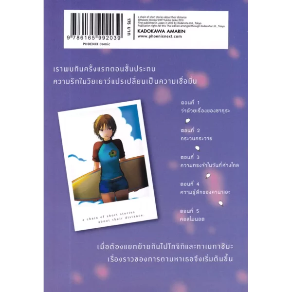 เราพบกันครั้งแรกตอนชั้นประถม ความรักในวัยเยาว์แปรเปลี่ยนเป็นความเชื่อมั่น เมื่อต้องแยกย้ายกันไป “โทจิกิ” และ “ทาเนกาชิมะ” เรื่องราวของการตามหาเธอจึงเริ่มต้นขึ้น!