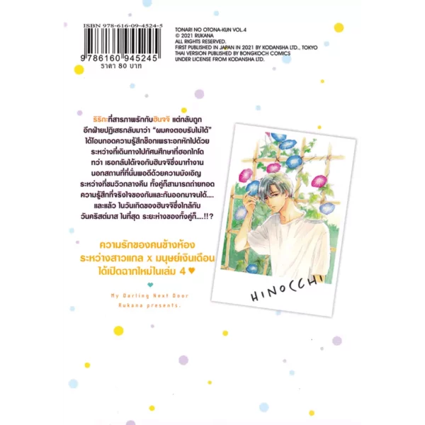 “ริริกะ” ที่สารภาพรักกับ “ฮินจจิ” แต่กลับถูกอีกฝ่ายปฏิเสธกลับมาว่า “ผมคงตอบรับไม่ได้” ได้โอบกอดความรู้สึกช็อกเพราะอกหักไปด้วย ระหว่างเดินทางไปทัศนศึกษาที่ฮอกไกโด ทว่า เธอกลับได้บังเอิญเจอฮินจจิซึ่งมาทำงานนอกสถานที่ที่นั่นพอดี ระหว่างชมวิวกลางคืน ทั้งคู่สามารถถ่ายทอดความรู้สึกที่จริงใจของกันและกันออกมาได้…และแล้ว ในวันเกิดของฮินจจิซึ่งใกล้กับวันคริสต์มาส ในที่สุด ระยะห่างของทั้งคู่ก็…!!? ความรักของคนข้างห้อง ระหว่างสาวแกล x มนุษย์เงินเดือน ได้เปิดฉากใหม่ในเล่ม 4!