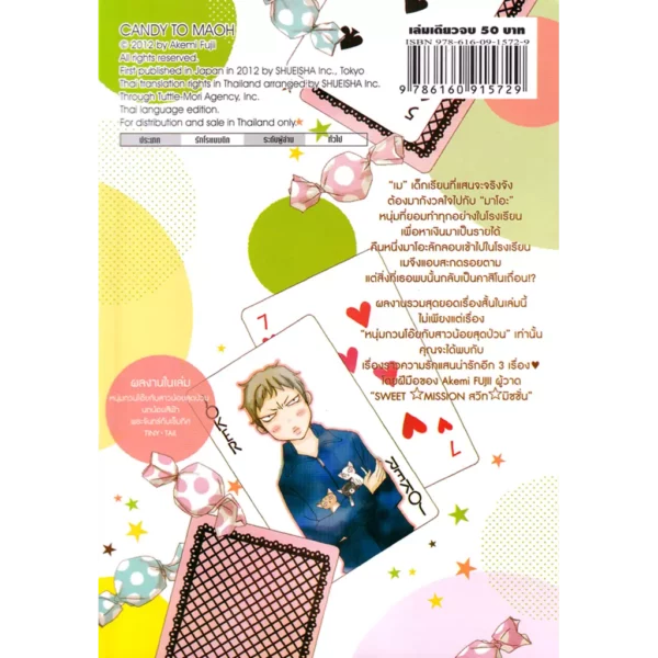 “เม” เด็กเรียนที่แสนจะจริงจังต้องมากังวลใจไปกับ “มาโอะ” หนุ่มที่ยอมทำทุกอย่างในโรงเรียนเพื่อรายได้ คืนหนึ่งมาโอะลักลอบเข้าไปในโรงเรียน เมจึงแอบสะกดรอยตาม แต่สิ่งที่เธอพบนั้นกลับเป็นคาสิโนเถื่อน!? ผลงานรวมสุดยอดเรื่องสั้นในเล่มนี้ ไม่เพียงแต่เรื่อง “หนุ่มกวนโอ๊ยกับสาวน้อยสุดป่วน” เท่านั้น คุณจะได้พบกับเรื่องราวความรักแสนน่ารักอีก 3 เรื่อง โดยฝีมือของ Akemi Fujii ผู้วาด “Sweet Mission สวีท มิชชั่น”