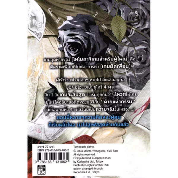 เกมสุดท้ายของ [โทโมดาจิเกมสำหรับผู้ใหญ่] คือตัดขาดเพื่อนที่ไม่ต้องการทิ้ง [เกมตัดเพื่อน] ผู้เข้าร่วมต่างค่อย ๆ หายไป ที่เหลืออยู่คือ “ยูอิจิ” “ชิโฮะ” “ชิเบะ” “ยูโทริ” 4 คน อีก 2 วันเกมจะสิ้นสุด จึงเริ่มคุยกันว่าจะโหวตให้ใคร ยูโทริได้อธิบายอดีตของยูอิจิกับ “ด้ายแห่งกรรม” ที่เชื่อมคนทั้ง 4 แต่สิ่งนั้นเป็นความจริงงั้นเหรอ…? ตอนนี้หลาย ๆ ความคิดของผู้คนก็เริ่มหลั่งไหล มุ่งไปสู่เฟสสุดท้ายกันแล้ว!