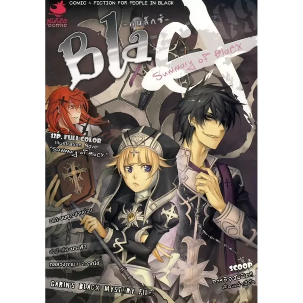 “BlaCX” รวมผลงานการ์ตูนและเรื่องสั้นสไตล์สีดำที่ไม่เคยลงที่ใดมาก่อน ในเล่มพบกับซีรีส์ใหม่ที่ชวนให้ลิ้มลอง อาทิ การริน BlaCX ปริศนาอาถรรพ์สีดำ ซึ่งยังคงถูกใจผู้อ่าน 081-ยมทูต-สายด่วน เสนะกลลวงตามายาวาณิช และอีกหลากหลายเรื่องราวที่น่าสนใจ มาร่วมค้นหาความเป็นไปได้ของสีดำพร้อมกันได้ในเล่มนี้