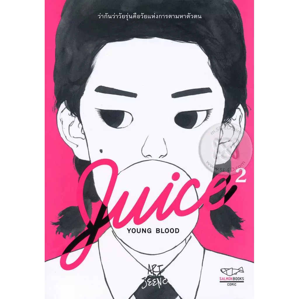 “Juice : Young Blood” หนังสือการ์ตูนวัยรุ่นว่าด้วยชีวิตวัยเกรียนที่ชวนสับสนงุนงง เดี๋ยวลง เดี๋ยวขึ้น มีเรื่องให้ตกใจอยู่ตลอดเวลา บอกเล่าผ่านลายเส้นนักเขียนการ์ตูนเอกลักษณ์จัดที่สุดคนหนึ่งของยุคนี้อย่าง “Art Jeeno” พี่พกเอาไอเดียชีวิตวัยรุ่น วัยเกรียนเรื่องถนัดมาถ่ายทอดให้ได้อ่านได้รำลึกประสบการณ์ที่หลายๆ คนคงเคยผ่านมาแล้ว ทั้งเรื่องของ “ทิม” เด็กมอปลายสายขบถสุดคูลที่อยู่ๆ ก็เกิดอยากปรับตัวให้เข้ากับคนอื่นโดยการลองเป็นเชียร์ลีดเดอร์ (ทั้งที่เล่มแรกยอมหนีตายไปวิ่งมาราธอนจนเหงื่อออกแทบหมดตัว!) “ม่อน” เด็กติ๋มที่อยากเปลี่ยนตัวเองโดยมีทิมเป็นไอดอล ทุ่มทุนโยนกีตาร์ทิ้งแล้วหันมาจับไม้กลองรัวกระเดื่องจนโดนตาตะโกนด่าลั่นบ้านเพราะหนวกหู และ “นุ่น” เด็กสาวผู้ตามหาความรักที่ม่อนหลงปลื้ม แต่พระพรหมดูจะไม่เป็นใจกับม่อนสักเท่าไหร่เมื่อนุ่นตัดสินใจเริ่มคบกับทิม ใครว่าชีวิตช่วงวัยรุ่นเป็นเรื่องง่ายกัน…ดูสิยุ่งยากจะตาย!