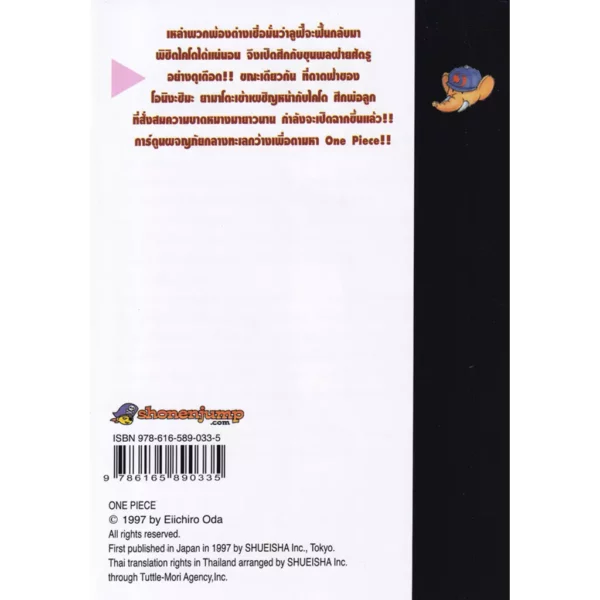 เหล่าพวกพ้องต่างเชื่อมั่นว่าลูฟี่จะฟื้นกลับมา พิชิตไคโดแน่นอน จึงเปิดศึกกับขุนพลฝ่ายศัตรู อย่างดุเดือด! ขณะเดียวกัน ที่ดาดฟ้าของ โอนิงะชิมะ ยามาโตะเข้าเผชิญหน้ากับไคโด ศึกพ่อลูก ที่สั่งสมความบาดหมางมายาวนาน กำลังจะเปิดฉากขึ้นแล้ว!! การ์ตูนผจญภัยกลางทะเลกว้างเพื่อตามหา One Piece!!