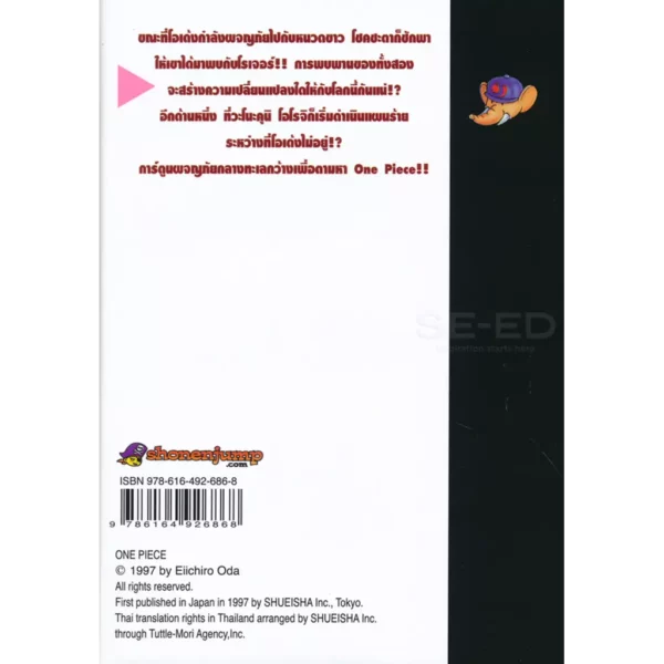 ขณะที่โอเด้งกำลังผจญภัยไปกับหนวดขาว โชคชะตาก็ชักพา ให้เขาได้มาพบกับโรเจอร์!! การพบพานของทั้งสอง จะสร้างความเปลี่ยนแลงใดให้กับโลกนี้กันแน่!? อีกด้านหนึ่ง ที่วะโนะคุมิ โอโรจิก็เริ่มดำเนินแผนร้าย ระหว่างที่โอเด้งไม่อยู่!? การ์ตูนผจญภัยกลางทะเลกว้างเพื่อตามหา One Piece!!