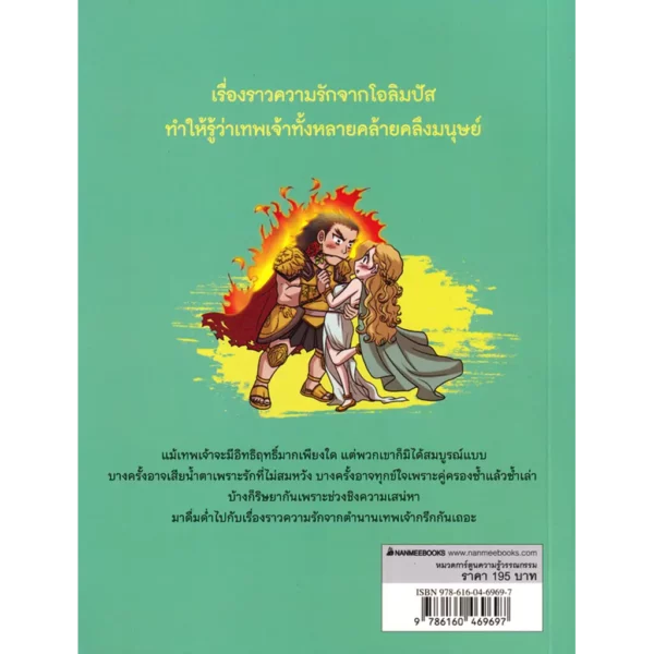 เรื่องราวความรักจากโอลิมปัส ทำให้รู้ว่าเทพเจ้าทั้งหลายคล้ายคลึงมนุษย์ แม้เทพเจ้าจะมีอิทธิฤทธิ์มากเพียงใด แต่พวกเขาก็มิได้สมบูรณ์แบบ บางครั้งอาจเสียน้ำตาเพราะรักที่ไม่สมหวัง บางครั้งอาจทุกข์ใจเพราะคู่ครองซ้ำแล้วซ้ำเล่า บ้างก็ริษยากันเพราะช่วงชิงความเสน่หา มาดื่มด่ำไปกับเรื่องราวความรักจากตำนานเทพเจ้ากรีกกันเถอะ!