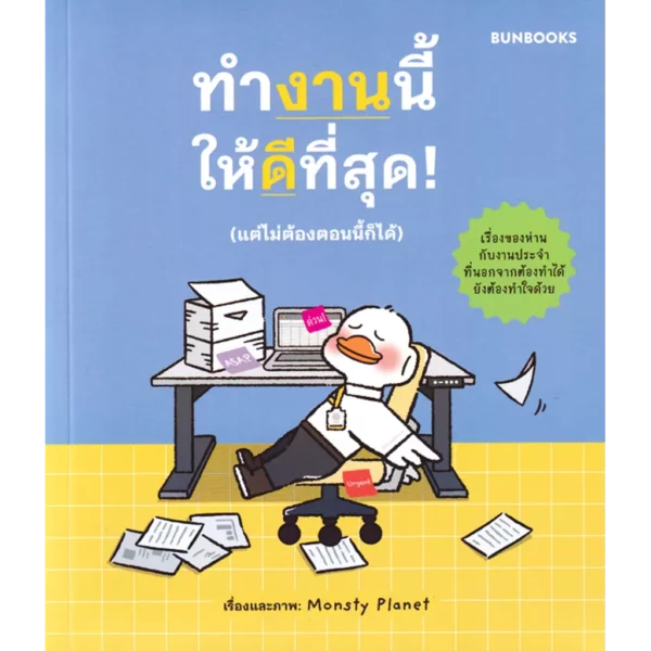 “ทำงานนี้ให้ดีที่สุด! (แต่ไม่ต้องตอนนี้ก็ได้)” หนังสือคอมิกสุดน่ารักจาก “Monsty Planet” ผู้สร้างคาแรกเตอร์ “ห่านเกลียดวันจันทร์” ในโลกออนไลน์ จนกลายเป็นการ์ตูนที่ไปโลดแล่นบนสินค้ามากมาย สู่หนังสือที่จะทำให้ทุกคนรักวันจันทร์มากขึ้น เพราะวันอื่นก็เหนื่อยเหมือนกัน…