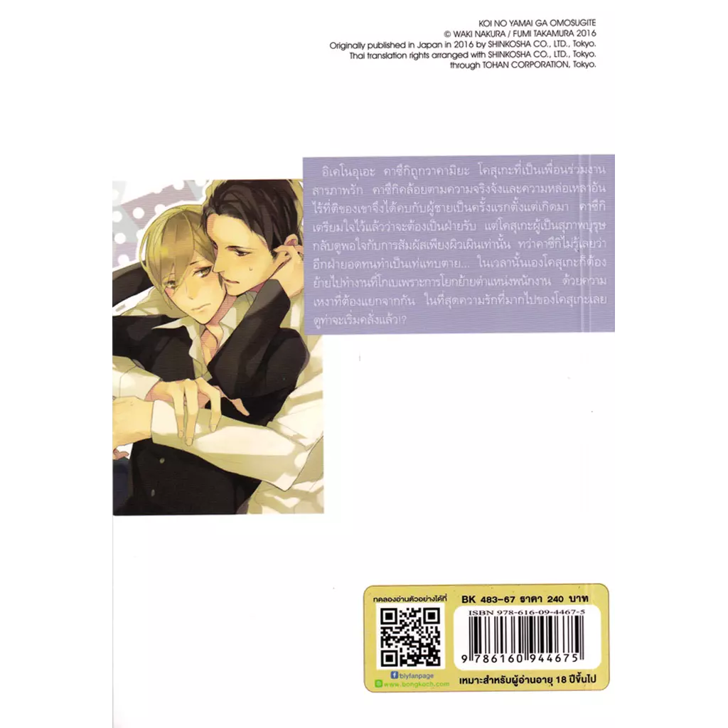 “อิเคโนอุเอะ คาซึกิ” ถูก “วาคามิยะ โคสุเกะ” ที่เป็นเพื่อนร่วมงานสารภาพรัก คาซึกิคล้อยตามความจริงจังและความหล่อเหลาอันไร้ที่ติของเขา จึงได้คบกับผู้ชายเป็นครั้งแรกตั้งแต่เกิดมา คาซึกิเตรียมใจไว้แล้วว่าจะต้องเป็นฝ่ายรับ แต่โคสุเกะผู้เป็นสุภาพบุรุษกลับดูพอใจกับการสัมผัสเพียงผิวเผินเท่านั้น ทว่าคาซึกิไม่รู้เลยว่าอีกฝ่ายอดทนทำเป็นเท่แทบตาย…ในเวลานั้นเองโคสุเกะก็ต้องย้ายไปทำงานที่โกเบ เพราะการโยกย้ายตำแหน่งพนักงาน ด้วยความเหงาที่ต้องแยกจากกัน ในที่สุดความรักที่มากไปของโคสุเกะจึงดูท่าจะเริ่มคลั่งแล้ว!?