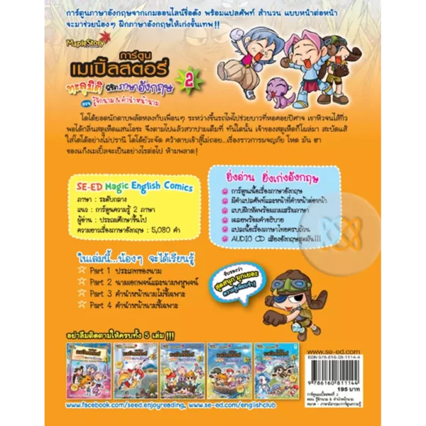 SE-ED Magic English Comics ขอเสนอการ์ตูนช่องภาษาอังกฤษสุดฮา ศัพท์ สำนวนและสแลงตามที่เจ้าของภาษาใช้จริง ภาพสีสวยงามพร้อมแปลศัพท์ สำนวน แบบหน้าต่อหน้า ทุกท้ายบทมีอธิบายไวยากรณ์อย่างละเอียด มีแบบฝึกหัดทบทวนศัพท์และไวยากรณ์ เกมภาษา ท้ายเล่มมีเฉลยแบบฝึกหัดพร้อมคำอธิบายแต่ละข้อ และบทแปลเนื้อเรื่องภาษาไทย แถมฟรี! ซีดีเสียงพากย์ภาษาอังกฤษตามเนื้อเรื่อง ด้วยการออกเสียงที่ถูกต้อง โดโด้ยอดนักดาบพลัดหลงกับเพื่อนๆ ระหว่างขึ้นรถไฟไปช่วยบาวที่หอคอยปีศาจ เขาหิวจนไส้กิ่ว พอได้กลิ่นสตูเห็ดแสนโอชะ จึงตามไปแล้วสวาปามเต็มที่ ทันใดนั้น เจ้าของสตูเห็ดก็โผล่มา สะบัดแส้ใส่โดโด้อย่างไม่ปรานี โดโด้ยัวะจัด คว้าดาบเข้าสู้ไม่ถอย…เรื่องราวการผจญภัย โหด มัน ฮา ของแก๊งเมเปิ้ลจะเป็นอย่างไรต่อไป ห้ามพลาด!