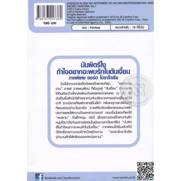 หนังสือ มันผิดรึไงถ้าใจอยากจะพบรักในดันเจี้ยน ภาคพิเศษ ซอร์ด โอราโทเรีย เล่ม 1