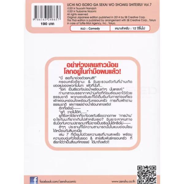 “นี่.. เธอก็มาช่วยด้วยคนสิ!” ครอบครัวอียามะ ชินยะรวมตัวกันที่บ้านเกิด ของแม่ของพวกโมโมกะ แล้วที่นั่นก็…”ใช่ค่ะ เป็นเรียวกังบ่อนํ้าพุร้อนเก่าๆ นั่นแหละค่ะ” ท่ามกลางบรรยากาศบ้านเกิดที่ห้อมล้อมเอาไว้ด้วย ธรรมชาติ พวกของชินยะก็ได้เต็มอิ่มกับการท่องเที่ยว พักผ่อนหย่อนใจพร้อมกับครอบครัว การเก็บผักตามธรรมชาติ และการแช่อ่างนํ้าร้อนกลางแจ้ง! อีกทั้งยังมี “ยูกิ วาดไม่ได้ค่ะ..” ยูกิซึ่งหาได้ยากที่จะกังวลกับเรื่องวาดภาพ “การบ้าน” อะไรกันนะที่ยากเกินไปสำหรับเธอ? ชินยะจะหาหนทางรับมือกับความปรารถนาที่ไม่อาจเป็นจริงนั้นได้หรือไม่ ฮิๆ ประธานก็ใช้ความสามารถนั้นในแบบอ่อนโยน ได้เหมือนกันสินะคะเนี่ย เล่ม 7 ที่เปี่ยมไปด้วยความสุขที่บานสะพรั่ง.. พร้อมความอบอุ่นหัวใจชั้นยอด สายสัมพันธ์ครอบครัวที่เรียกได้ว่า.. เป็นสิ่งมหัศจรรย์ได้มาถึงแล้ว!