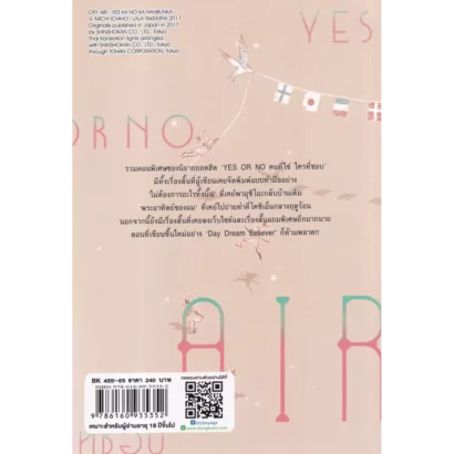 รวมตอนพิเศษของนิยายยอดฮิต “Yes or No คนที่ใช่ ใครที่ชอบ” มีทั้งเรื่องสั้นที่ผู้เขียนเคยจัดพิมพ์แบบทำมืออย่าง “ไม่ต้องการอะไรทั้งนั้น” ที่ “เคย์” พา “อุชิโอะ” กลับบ้านเดิม “พระอาทิตย์ของผม” ที่เคย์ไปถ่ายทำที่โคชิเอ็นกลางฤดูร้อน นอกจากนี้ยังมีเรื่องสั้นที่เคยลงเว็บไซต์และเรื่องสั้นแถมพิเศษอีกมากมาย ตอนที่เขียนขึ้นใหม่อย่าง “Day Dream Believer” ก็ห้ามพลาด!!