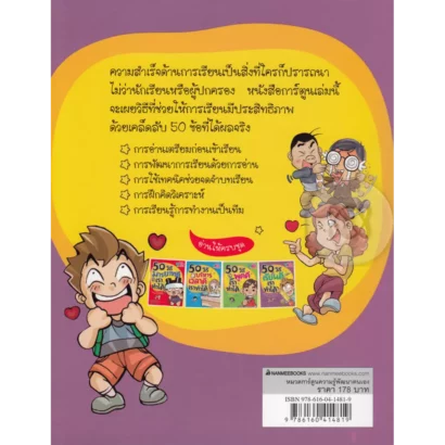 หนังสือที่จะเผยเคล็ดลับสู่การพัฒนาด้านการเรียนอย่างมีประสิทธิภาพ ด้วยการ์ตูนสั้นสุดฮาที่แฝงแง่คิดด้านการเรียน พร้อม 50 เคล็ดลับท้ายบท ที่จะช่วยเตรียมความพร้อมและแก้ไขปัญหาซ้ำซากที่พบเจอในการเรียนประจำวันได้ ไม่ว่าจะเป็น การอ่านเตรียมก่อนเข้าเรีัยน การใชเทคนิคช่วยจำบทเรียน การฝึกคิดวิเคราะห์ การเรียนรู้การทำงานเป็นทีม และอื่นๆ อีกมากมาย ที่รับรองว่าหากลองนำไปใช้อย่างจริงจัง การเรียนจะพัฒนาขึ้นอย่างแน่นอน